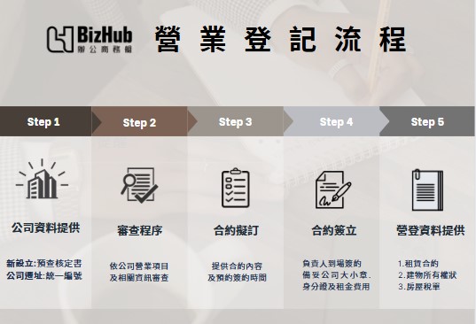 許多共享辦公室或商務中心,如 BIZHUB 商務中心,皆提供「公司登記地址租用」服務,並已通過政府合法申報,可用於營業登記。